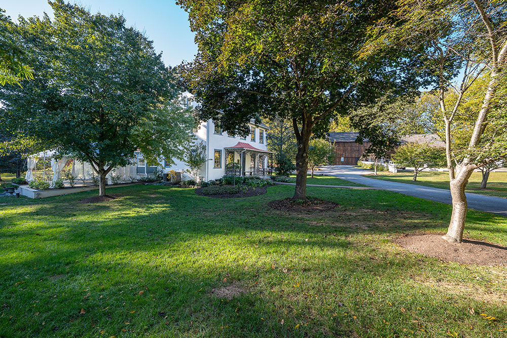 The open green in front of Duportail House where tours gather, events begin, and community celebrations take place. Visible from both the parking area and the Chester Valley Trail connection, it serves as a prominent and welcoming feature on campus.